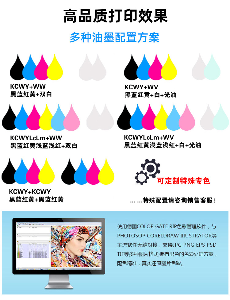 色彩配置:紅/黃/藍/黑/淺黑/淺黃/淺紅/淺藍/白色/光油(按需)